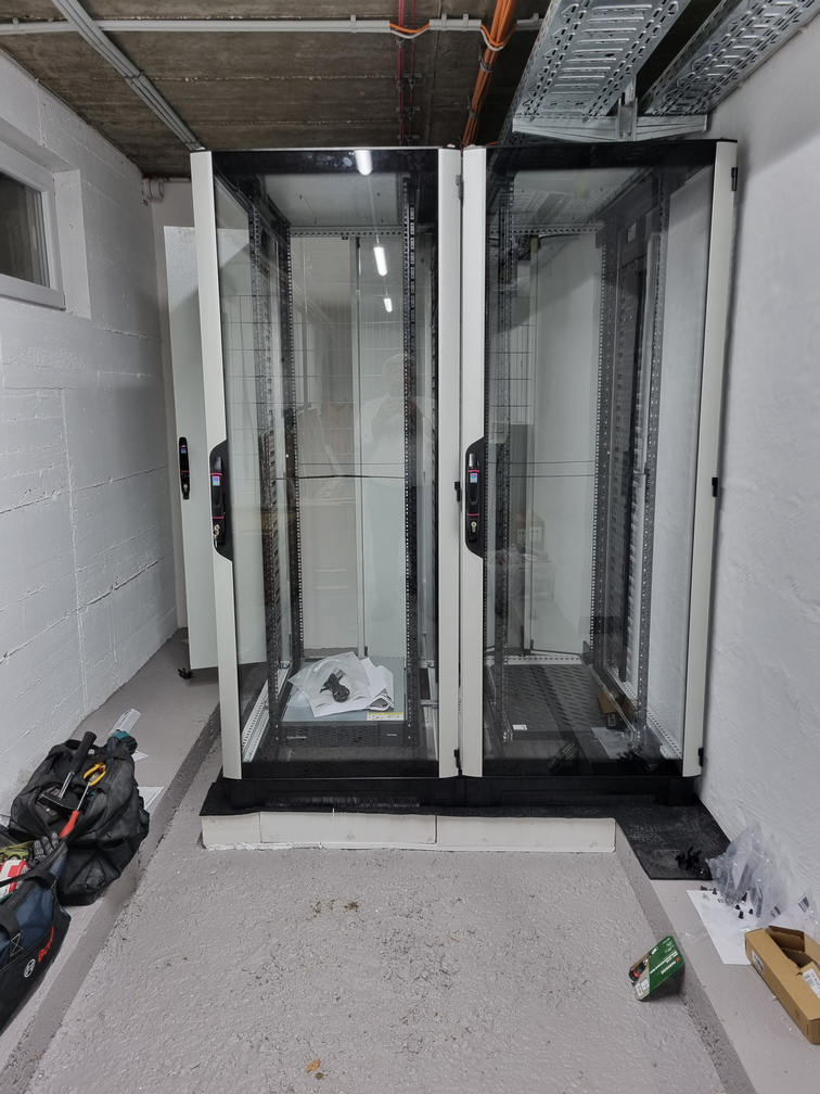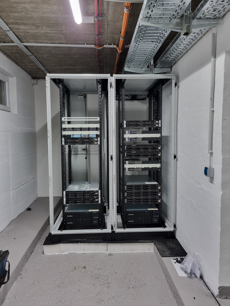 Hier ist mal ein kleiner Eindruck vom Wachsen und Werden unseres Data Centers. Anfangs noch als einfacher Kellerraum hin zu einem mit Gittern abgeschlossenen Bereich. Es folgte der Einbau der Schränke und der Server. Dabei hat uns die Firma Fibercom unter die Arme gegriffen, da es hier um viele hundert Kilo an Material ging. Anschließen durfte ich mich mit der Verkabelung austoben, ebenso mit dem Umbau und Einbau neuer Komponenten. Inzwischen ist alles stabil und läuft seit vielen Monaten störungsfrei.