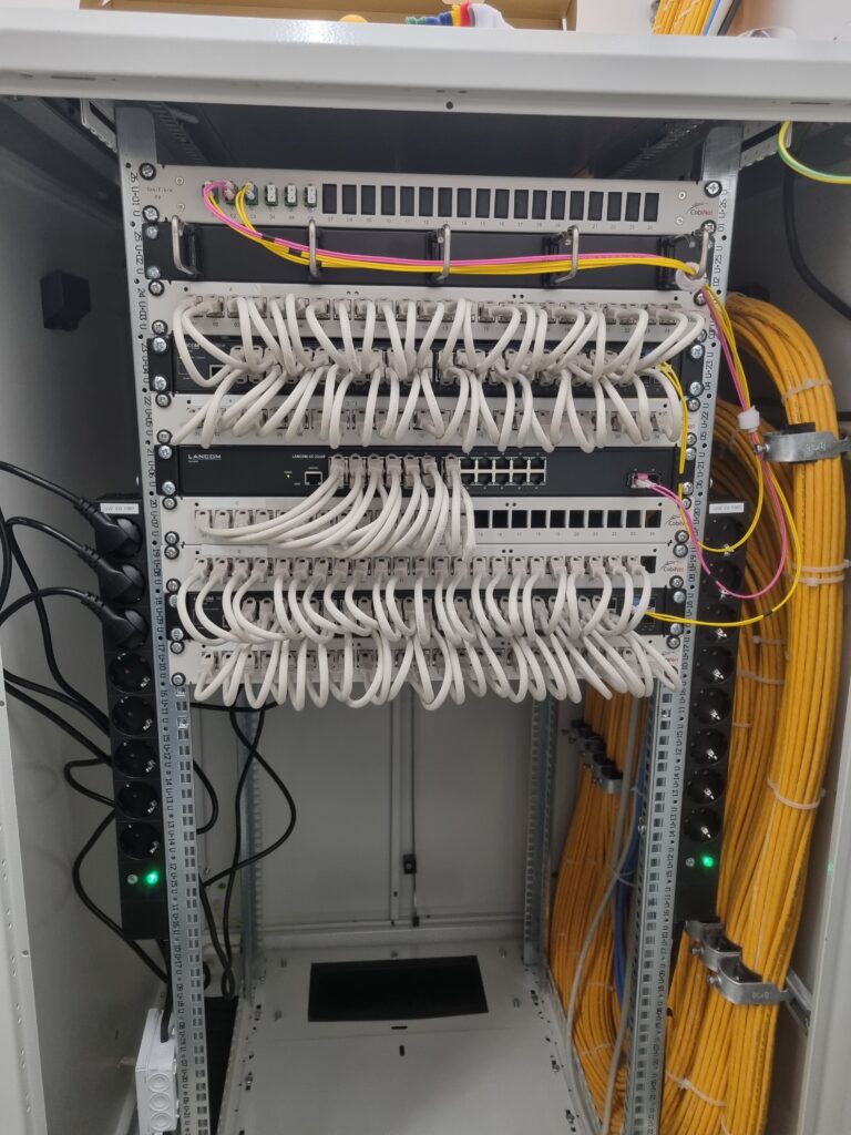 Die Woche ist um und ich darf vermelden, dass das neue Netzwerk in der neuen Ketteler LaRoche Schule steht. Alle Switches sind gesetzt, alle Dosen sind verkabelt, alle Server installiert und auch für das WLAN ist alles vorbereitet. Hier mal ein paar Bilder dazu.